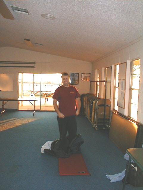 Gracious host Lew Mason, who is the airport manager at San Geronimo. Tweaking his satellite dish to receive the latest command and control information from the Iraqi Army ;o)