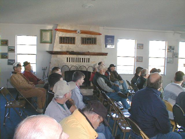 More of the interested listeners. Far left, in coveralls, is EAA 35 President Norris Warner, who is building a Breezy. Center of the picture, directly in front of the fireplace, is KR-2S builder Ricky Farley of San Angelo, TX. Ricky was the hardiest of all the College attendees... the last to leave as the College adjourned on Sunday night.