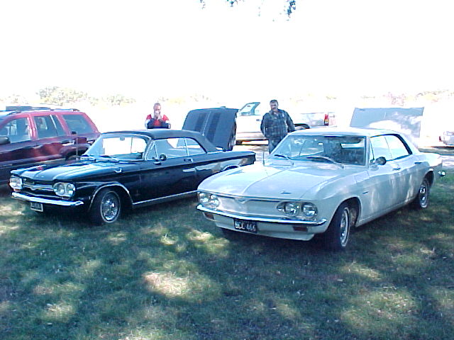 On the left is Dan Benson from Tomball, TX, creator of the awesome CAD 3-views of the Corvair that came out in the most recent issue of William's "Corvair Flyer". Dan arrived early Friday morning and had copies of the CAD 3-view that he was handing out at the College. On the right is Paul Zimmerman, alumnus of a former Corvair College and one of the few Texas Aggies that's worth a hill of beans. Paul, a Dragonfly builder from Garland, TX, brought his completed engine to the College to show (photos on another page).
