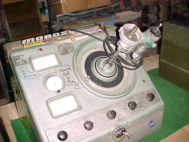 William's infamous distributor curving machine. It has some very mysterious knobs on it. And pay no attention to the obsolete, antique 4-cylinder airplane engine standing in the corner of the hangar. We had to tolerate it since it's Lew's.