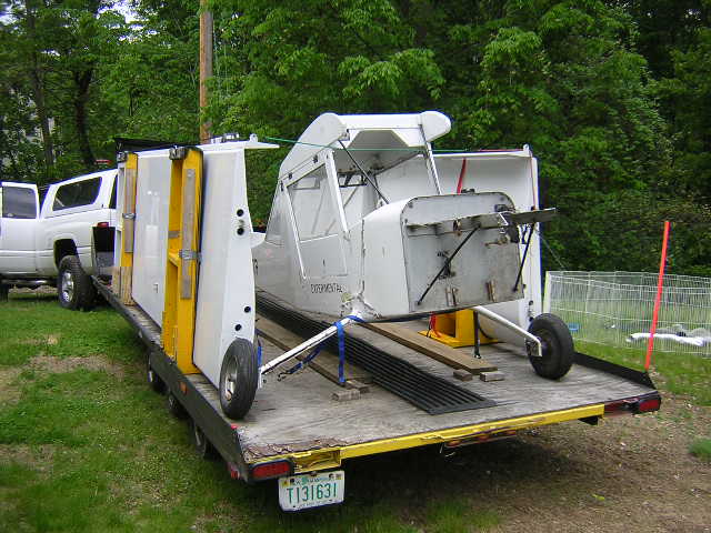 This is a classic JN-1, constructed from plans designed by Jim Peris. This airplane is perhaps the only JN-1 flying in Spain, and maybe even in all of Europe. It belongs to Fernando Abon. His comments about the plans are that they are more of an outline than a step-by-step instruction manual, and he had to do quite a bit of head-scratching to get it built from the plans. He also said that it is a little slow in roll, due to the constant-chord rather deep wing (7" main spars, 4 ft. chord). The Barnard M-19 "Flying Squirrel" is based on the JN-1 and many similarities may be seen between the two designs. However, materials and methods used in the M-19 are more conventional aircraft, while the JN-1 uses basically "ultralight" construction.