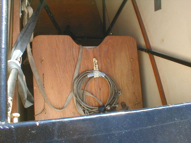 Another shot of the pilot's seat. Novel method of attachment: the seat is laced to the seat framing.