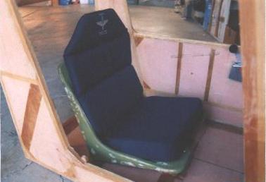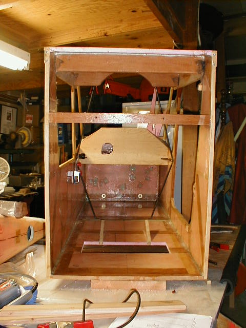 Here's the cabin at the end of Section III of the manual... sort of. No metal fittings on it. The seat is temporarily in place, but I've since re-done it to lower it about 2". The throttle quadrant is temporarily in place as well. What you see here weighed about 60 lbs., and represents about 200 hrs. of building time. I know that seems like a lot, but there are other sub-assemblies that are not in this picture that took lots of time, and won't be evident for quite a while yet. The door and latch took a while, for example, but aren't in this picture.