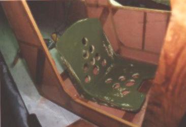 Don't know if you can see this too well, but with the seat temporarily dropped into place in the new floor cutout, the aft corner of the seat is now "submerged" 2" into the floor. Belly will enclose it. Seat is still hinged at the front, giving me access to elevator control cables running in the belly.