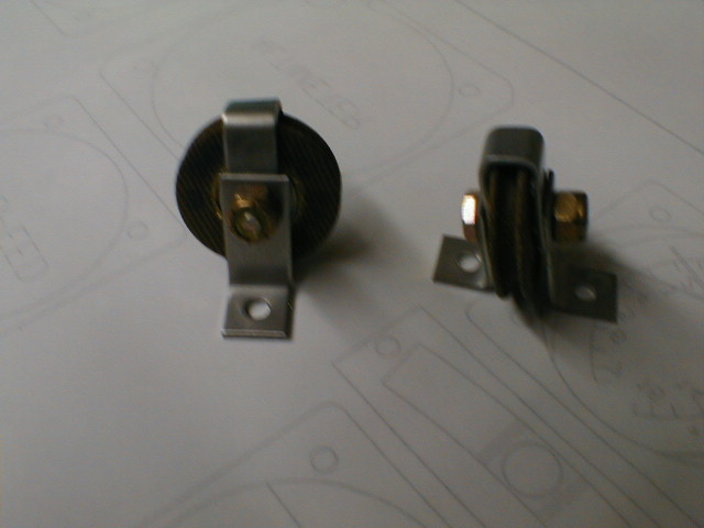 Trying out the macro mode on the new digital camera. Forgot to wait while it autofocused, but you get the idea. My lower aileron pulleys; Jeff used stainless to make the brackets out of.
