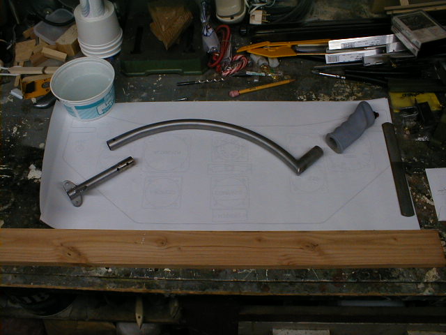 This is my tailhook release. With a single-place airplane and no electrics, most flights will be made with no one around to help me prop it, so I'm installing a tail tie-down hook (like used in glider tow) for holding the tail while I prop it. I installed my cabin door on the starboard side and all engine controls on port side, meaning I need a reach-in sliding window on the port side so I can control the engine while starting it (from behind the prop). I'll then have to walk around the (running) engine/prop to get in... and I don't trust chocks with the plump mini-tundra tires. All of this so I could have stick in right hand and throttle in left! Anyway, with a release in the cabin, there should be less fiddling around with trying to pull chocks after climbing in (although I will use both chocks and the tie-down, I'll pull the chocks after the engine is running but before climbing in). The release cable, obviously, has not been installed in this photo; I used a piece of wire to line up the cable adjuster center with the lever arc.