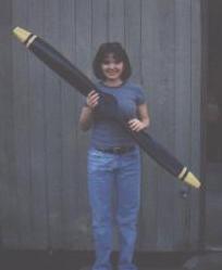 Here's my daughter Bethany with my Tennessee Props "De-Wa Deluxe" propeller. It weighs somewhere between 4 and 5 lbs. and cost less than $250 including shipping. So far, Tennessee Props is the "unofficial propeller" for the M-19 Flying Squirrel. Contact Larry Breece at tpi@tn-props.com