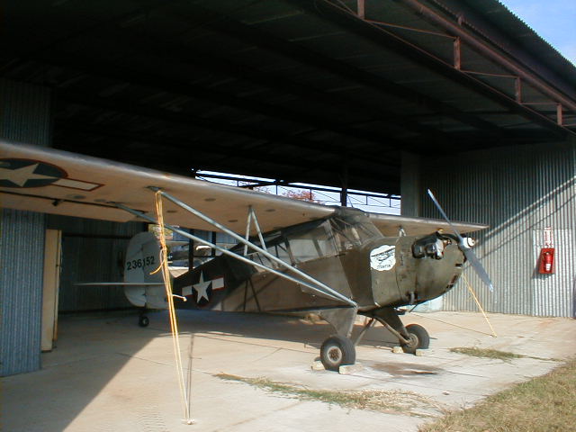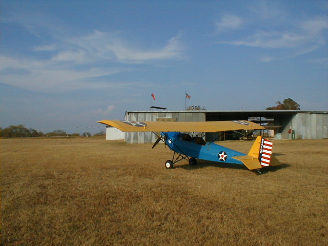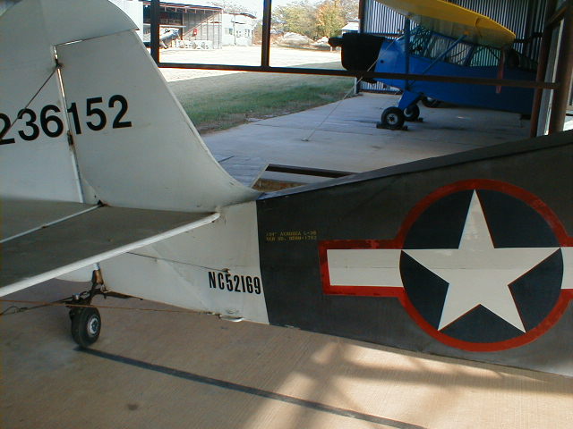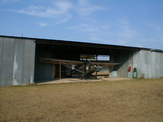 After fueling up (both me with Thanksgiving dinner and the airplane with 100LL), we made a scouting sortie to Cannon Field, south of San Antonio and maybe 25 mi. from my home base at San Geronimo. Cannon is home to the International Liaison Pilot and Aircraft Association. I had made low passes over the field before, but this was my first landing there and the first attempt was a no-go. The runway has a belly in the middle and by the time I realized that I wasn't coming down fast enough, half the strip was gone so I went around. Next try was a good one. I parked the airplane and went to poke around in the hangars.