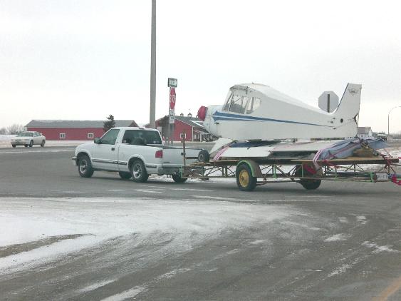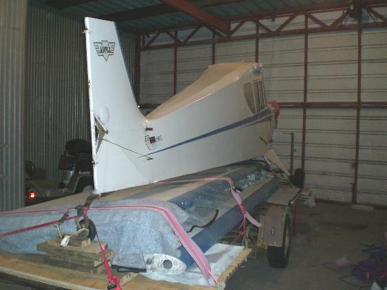 Corky drove from his home in Shreveport, Louisiana to Fargo, North Dakota to retrieve his new toy. Wings and tail feathers were dismounted, loaded, secured, and headed south to a new life among more pleasant company and surroundings ;o)