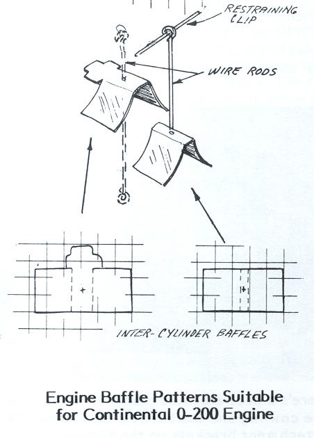 With gratitude to the late Tony Bingelis, here's a detail of an easy-to-fabricate baffle that goes in the space between the cylinders on a small block Continental. The purpose is to direct cooling air down around the base of the cylinders, stopping it from dumping straight down through the "slot" between the cylinders and creating hotspots on the undersides. This is for cooling air coming in from above, as is the setup on almost all engines with a pressure cowling or with "eyebrows" like on a J-3 Cub.