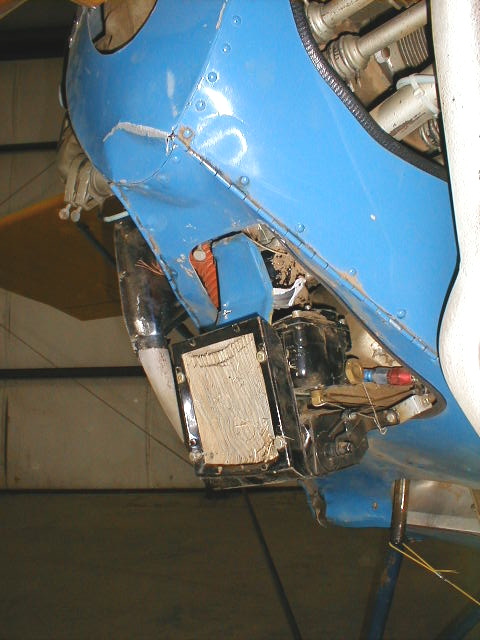 Hardly any damage on this side of the cowling... some scratches and a wrinkle. The exhaust stack is bent back a bit though, and will need rework or replacement.