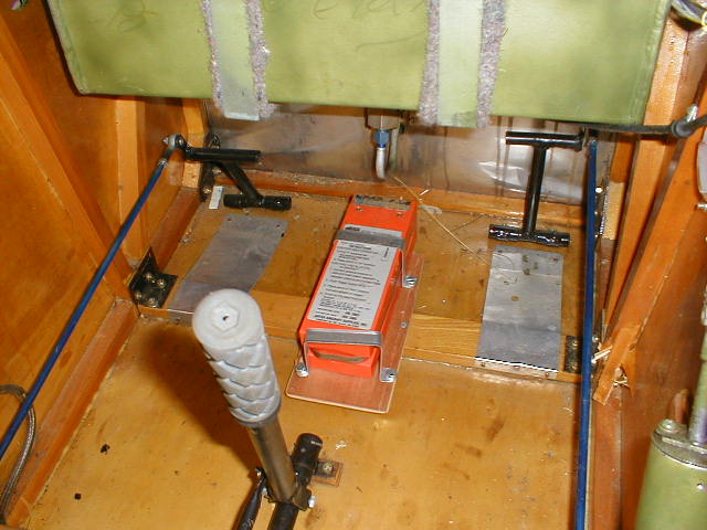 The ELT was activated by the sudden stop, as is evident in this picture. Funny thing is that nobody responded to the ELT signal in the three days that it was activated. Good thing nobody needed immediate attention! Oh, and notice in this photo one of the wood verticals (near the starboard rudder pedal) was damaged by one of the wing struts punching through it. It will be cut out and replaced.