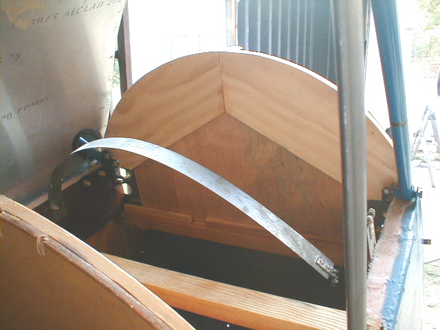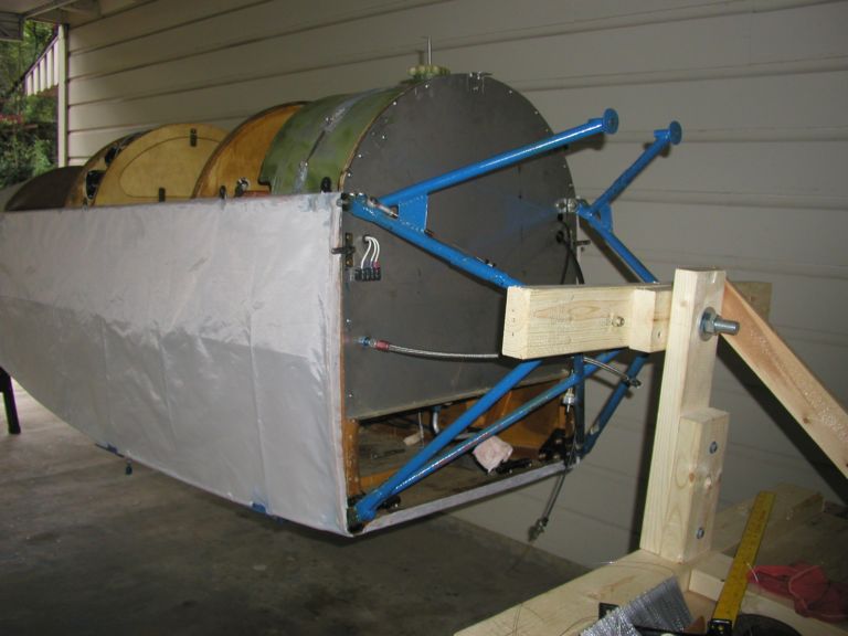 This shot, with the original firewall in place, shows the 'shoulder' or shelf welded into the aft side of the fuel tank to provide a bit more capacity as well as provide support on the crossmember.