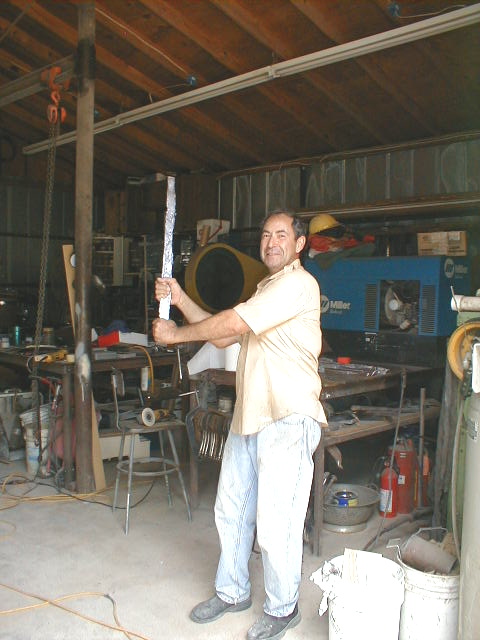 This is what happens when your project stays in the shop too long. My friend (and welder, and metalworker extraordinaire) Sal Hernandez finally couldn't stand it any longer and ran me and 41CC out of his shop on Saturday, 7/9/05. Sal had been casting some lead ingots for a handloader friend so he picked up a lead bar and was about to take it to the Piet. I loaded it up and got the heck out of Dodge...