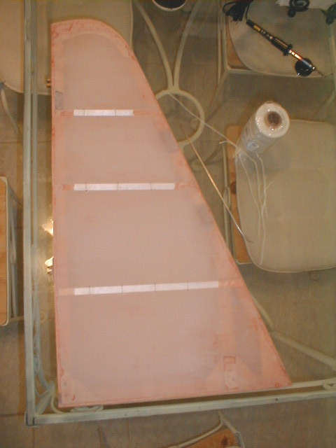 ...I also found the two lower ribs split in their mid-spans as well. So I stripped all the fabric off the VS. With encouragement from my friend Jeff Scott, I dived into new waters for me... the wonderful world of fabric covering.