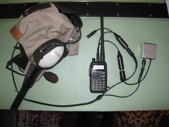 This is the homely, inexpensive, simple little radio setup that I use when I fly out of towered fields or when I otherwise need to have a radio aboard. Not in the picture is a portable 2-place Sigtronics intercom that I use when I fly a passenger, but there is so much black spaghetti in the cockpit with all that stuff that I try to avoid it. Simple little Icom IC-A23 and a basic headset. Connecting the two I have an Icom headset adapter and the jack for a remote push-to-talk (PTT) switch is hanging free at the top of the setup. The only oddball component is the little aluminum project box that I cut out and bent up to contain a small Radio Shack impedance matching transformer. The audio output from the handheld wants to see 8 ohms but the receivers in the headset are 300 ohms, so the transformer makes them friendlier to each other and it raises the headset volume so I can actually hear something. Without the impedance matching the audio was so feeble I had to reduce power and duck behind the windscreen to just barely make out what I was hearing. This is much better. The part about the whole radio setup that I never did like was the Velcro-attached PTT with the coiled cord, and after it started falling apart I threw it against the hangar wall and decided to get a real PTT. Having heard good things about the Ray Allen grips, I purchased their G101 model, which is their simplest and least expensive at $36. I like it!