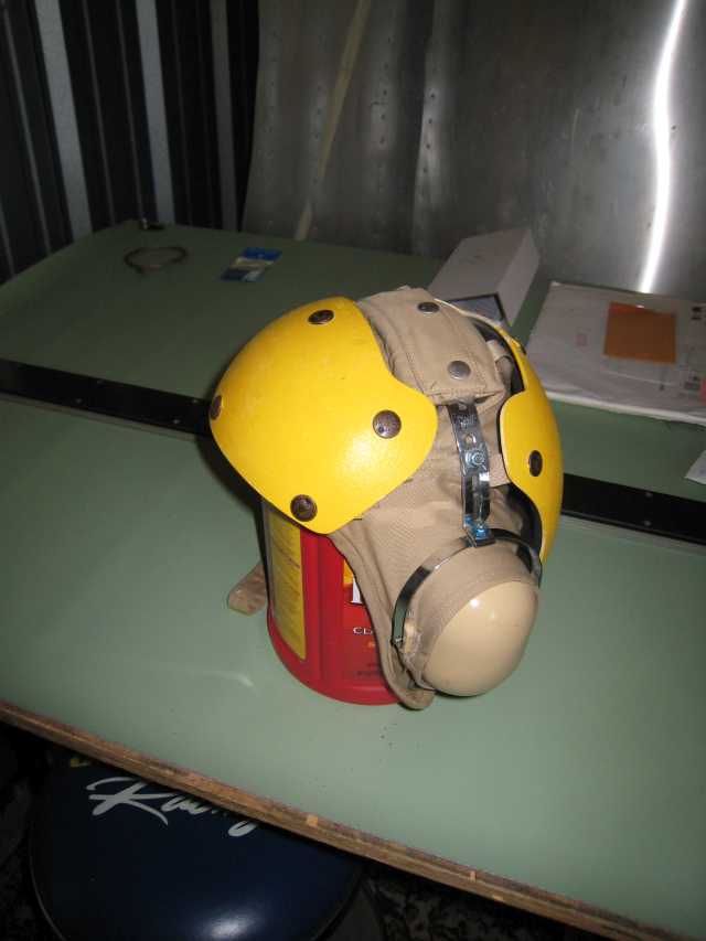 Here's what I wear when I'm flying NORDO, out of controlled airspace, and just want some hearing protection and head covering. Surplus carrier flight deck crewman's helmet. Complete with goggles, I got it for less than $40 on eBay and those are genuine David Clark hearing protectors. Took the impact panels off, painted them to match Scout's yellow paint, and we're good to go. Thousands of Navy carrier deck crew can't be wrong ;o)