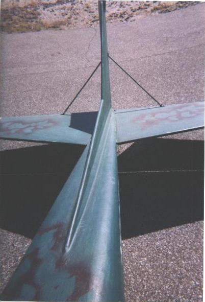 The M-19's tail feathers and fin; rounded edges of empennage.