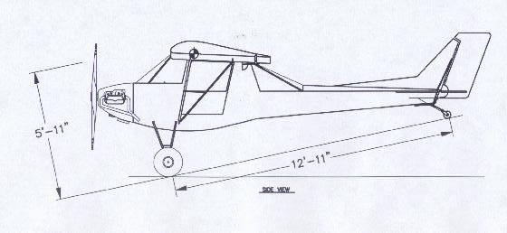 Side view of the airplane, again with theoretical dimensions as per AutoCAD.